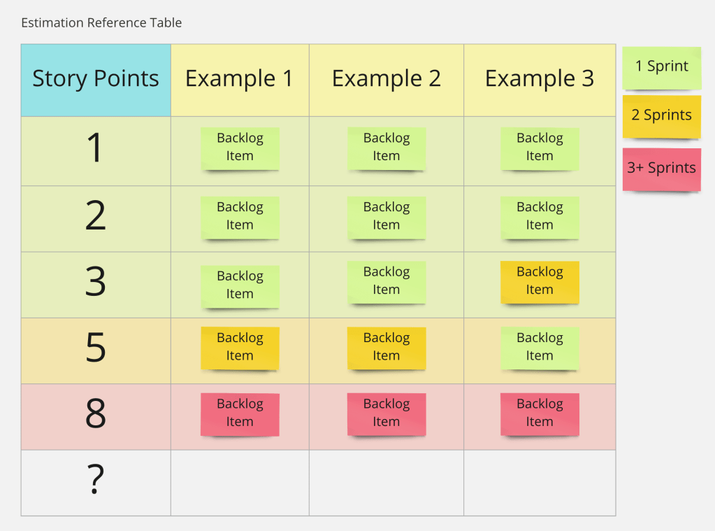 Present the idea behind the table and check each example with a team if based on the details inside the story they still feel that it’s a good representation of this particular estimation. If something doesn’t make sense, remove it.